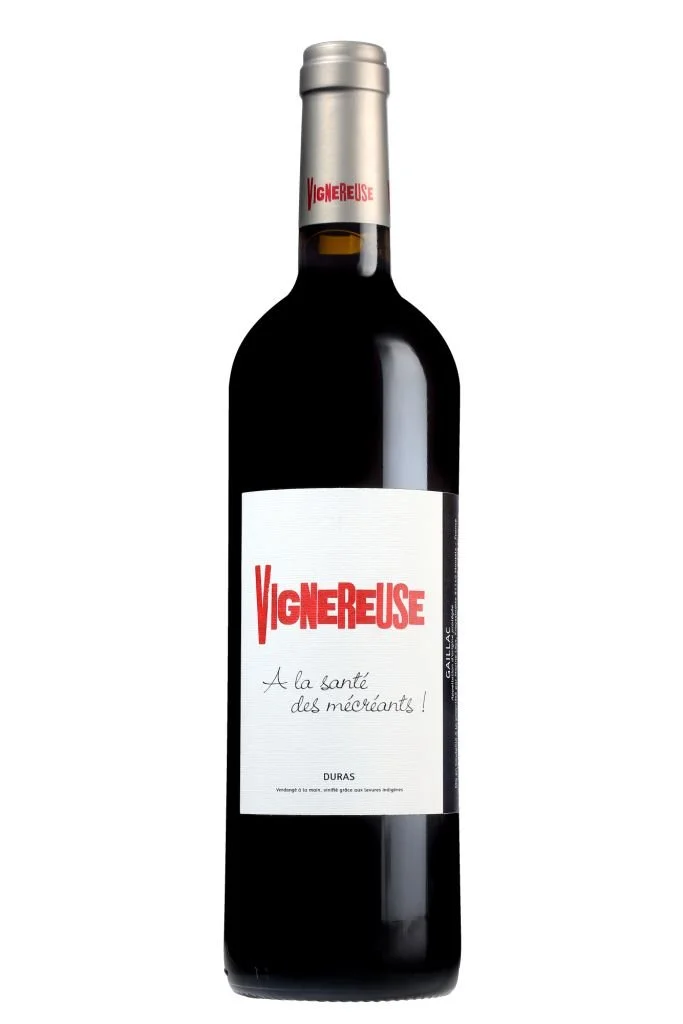 Mes vignes se trouvent sur le côteau surplombant le petit village d’Andillac, près de Cahuzac-sur-Vère. Elles sont situées sur le plateau cordais, sur un sol calcaire. Une partie des vignes est palissée: La Syrah, le Braucol et une parcelle de Duras, l’autre est en gobelet : Le gamay, le Mauzac, le loin de l’oeil, et une jolie petite parcelle de 55 ans de Duras. J’ai tout de suite travaillé les vignes en bio, elles sont certifiées BIO depuis 2014. Je fais le maximum pour limiter l’entassement de végétation et des raisins; garder la plante bien aérée est ma première défense contre les maladies (mildiou, oidium). Pour cela, en hiver je fais une taille sévere mais douce, pour preserver les flux de sève. Je fais la taille et d’autres travaux en vert avec Sebastien Barraud, et notre petit brûleur pour nous tenir chaud. Au printemps, j’ébourgeonne et j’épampre plusieurs fois. Durant l’été, je n’écime que ce qui est necessaire au passage du tracteur et manuellement pour la plupart, afin de lui laisser le maximum de feuilles. C’est aussi la période des traitements, soufre et cuivre à faible dose mais regulierement. Si necessaire, avant les vendanges, j’effeuille du côté soleil levant. Bien sûr, la vendange est entièrement manuelle, une partie en caisses, une partie en benne mais une petite, pour ne pas tout écraser.